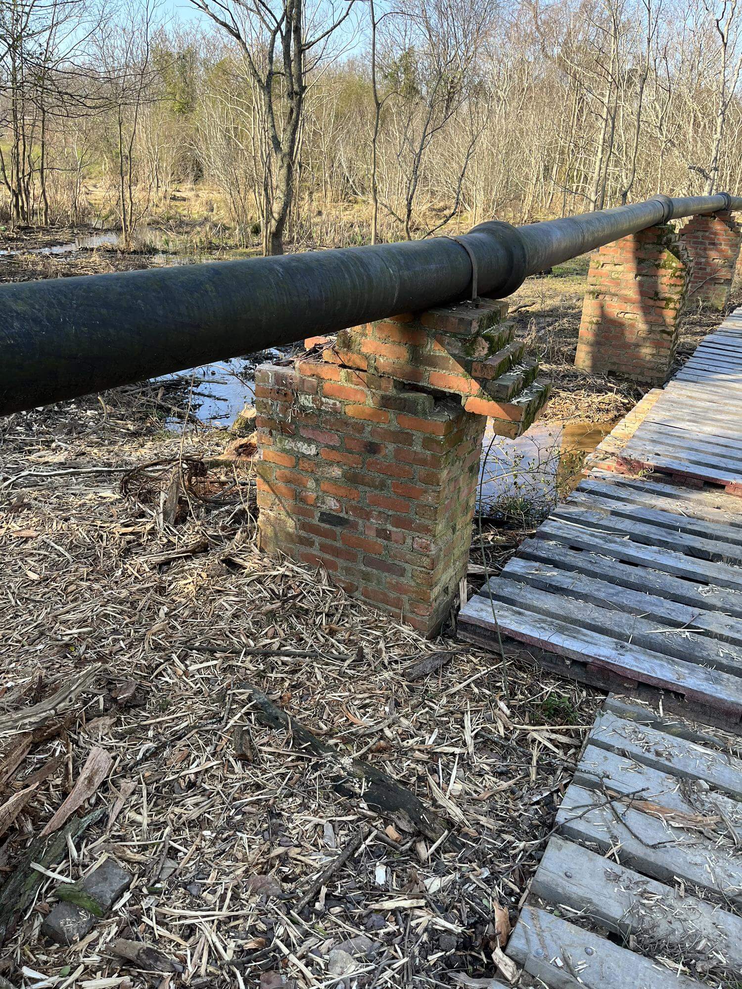 This project consisted of improvements to the sanitary sewer system on Auburn University campus from the Gilmer-Turnham Building to Beef Cattle Evaluation Center. Scope of work included removal of 514LF of existing 8” ductile iron aerial sewer line and 18 concrete support piers going across a pond, and installation of 18 new 10x42 H-pile supports and 514LF of new 8” ductile iron pipe.