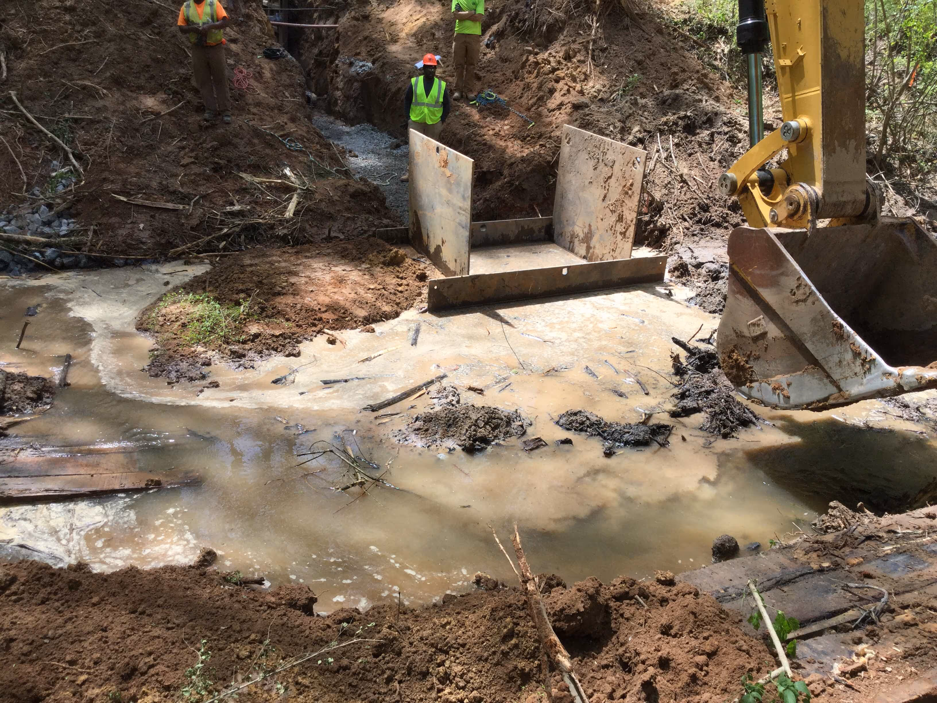 2,400 LF of 24” PVC pipe, creek crossing and 14 manholes